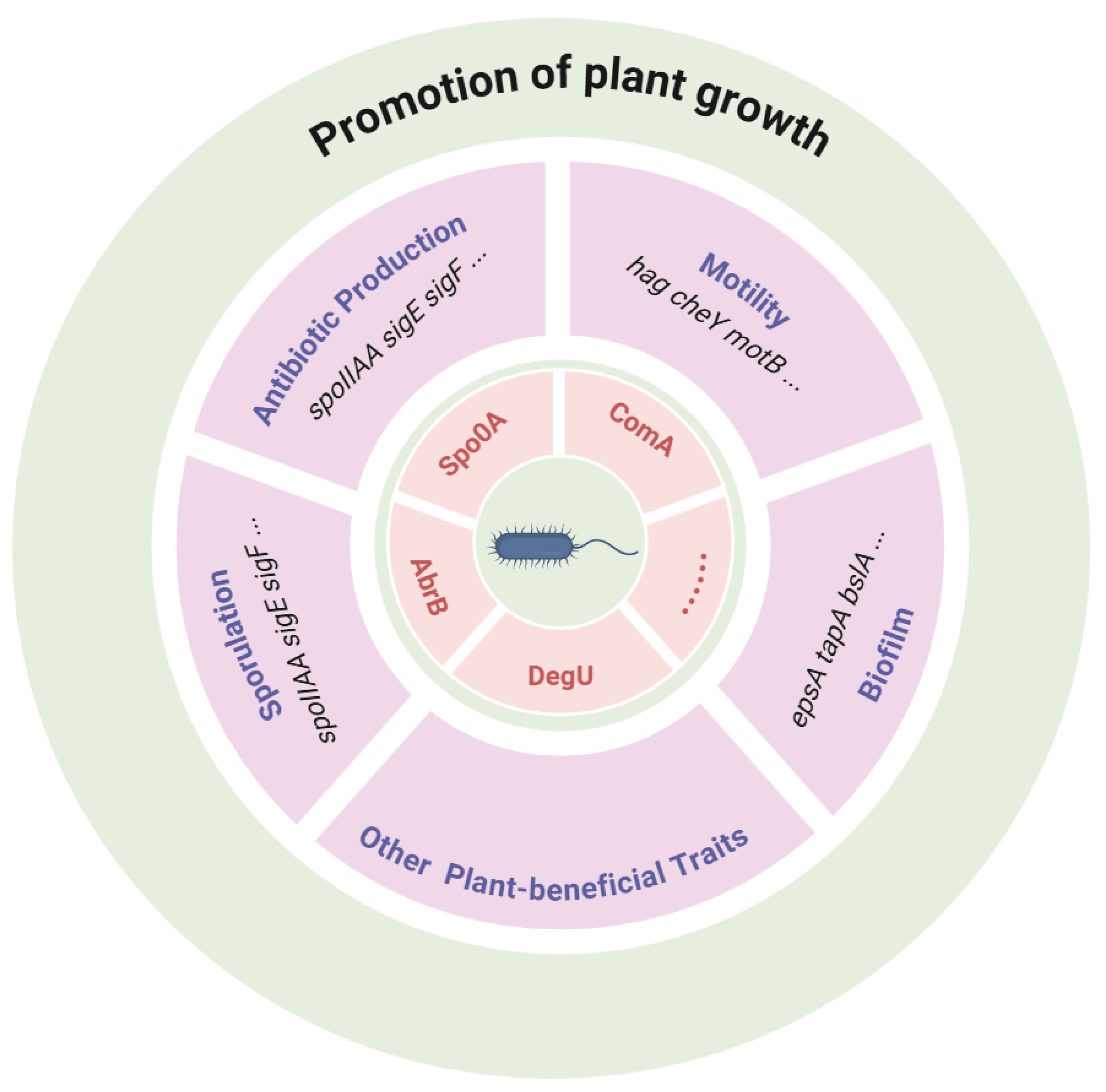 | Global Regulators | Spo0A, DegU, ComA, SinR, SinI | Master transcriptional regulators | Coordinate sporulation, biofilm formation, and secondary metabolite production | [19] |