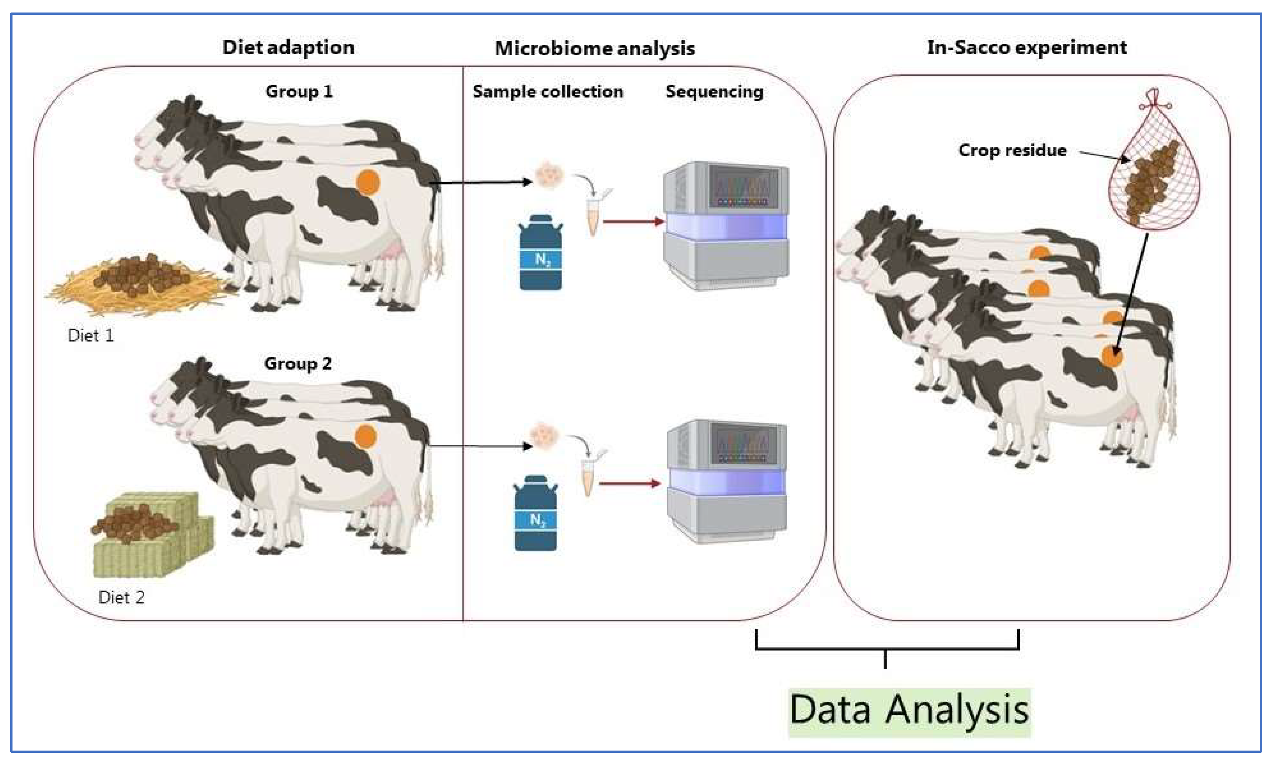 - McAllister, T.A.; Bae, H.D.; Jones, G.A.; Cheng, K.J. Microbial attachment and feed digestion in the rumen. J. Anim. Sci. 1994, 72, 3004–3018. [Google Scholar] [CrossRef]