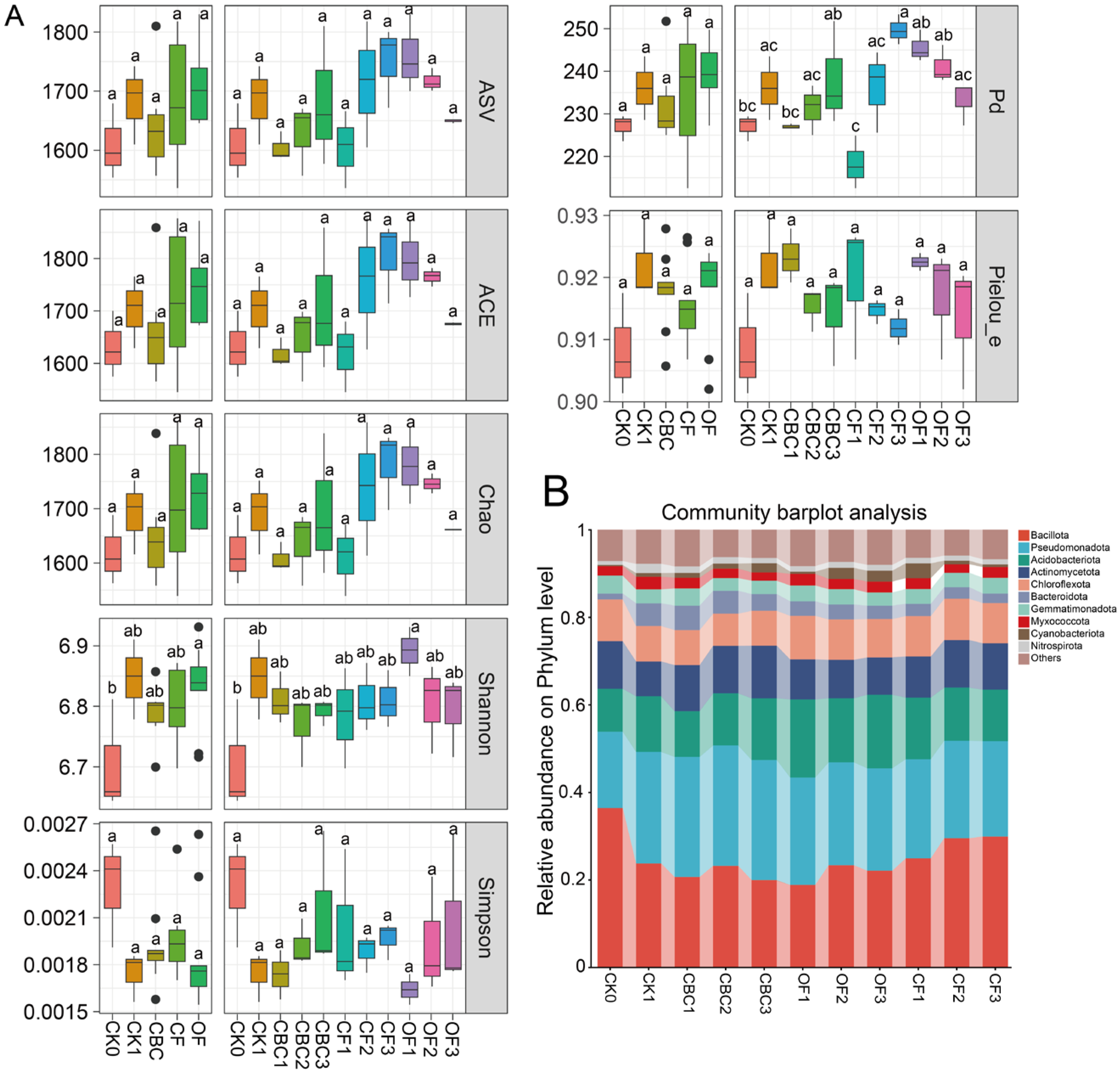 - Liu, X.; Shi, Y.; Kong, L.; Tong, L.; Cao, H.; Zhou, H.; Lv, Y. Long-Term Application of Bio-Compost Increased Soil Microbial Community Diversity and Altered Its Composition and Network. Microorganisms 2022, 10, 462. [Google Scholar] [CrossRef]
