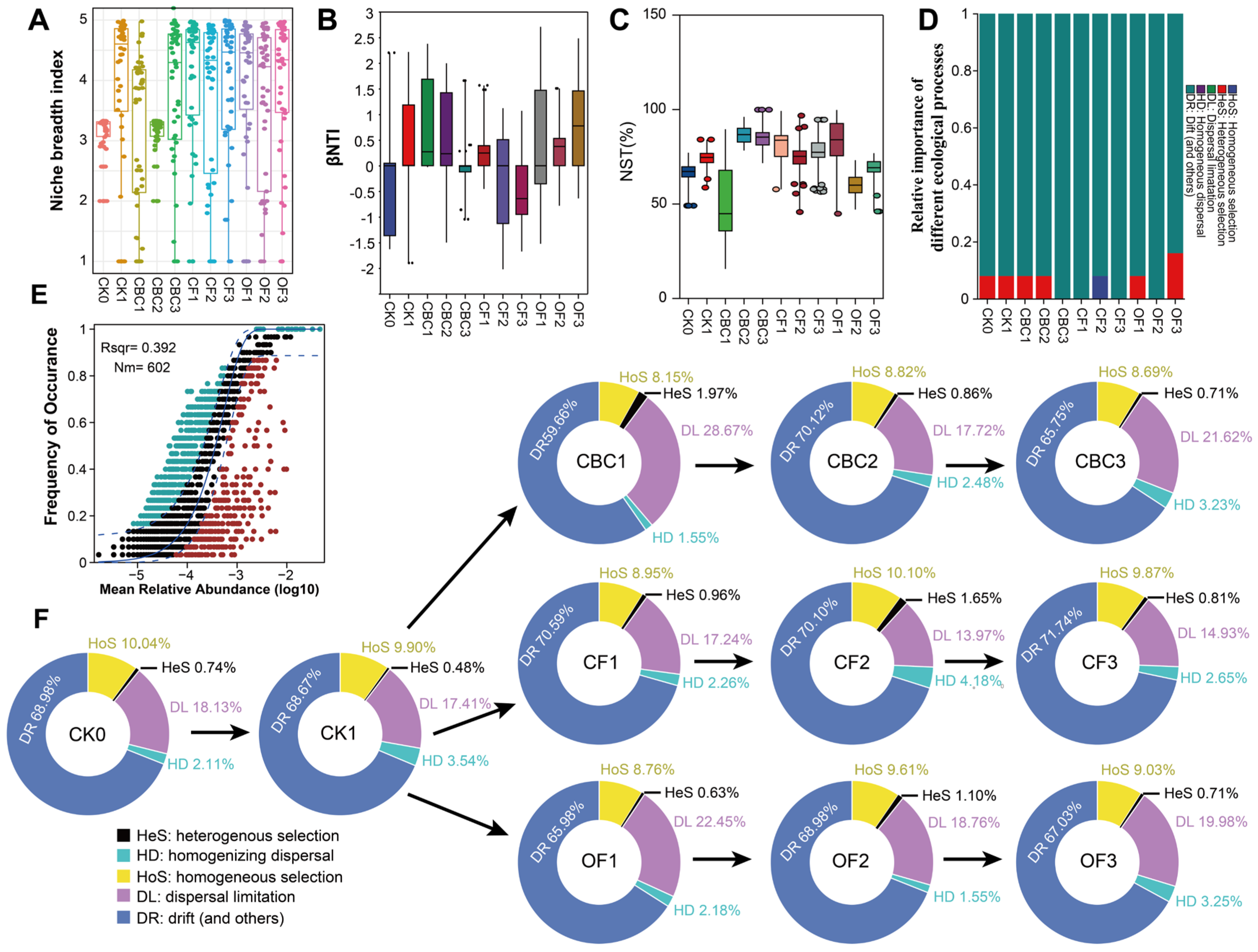 4.4. Stochastic and Deterministic Processes Structure Bacterial Community Assembly