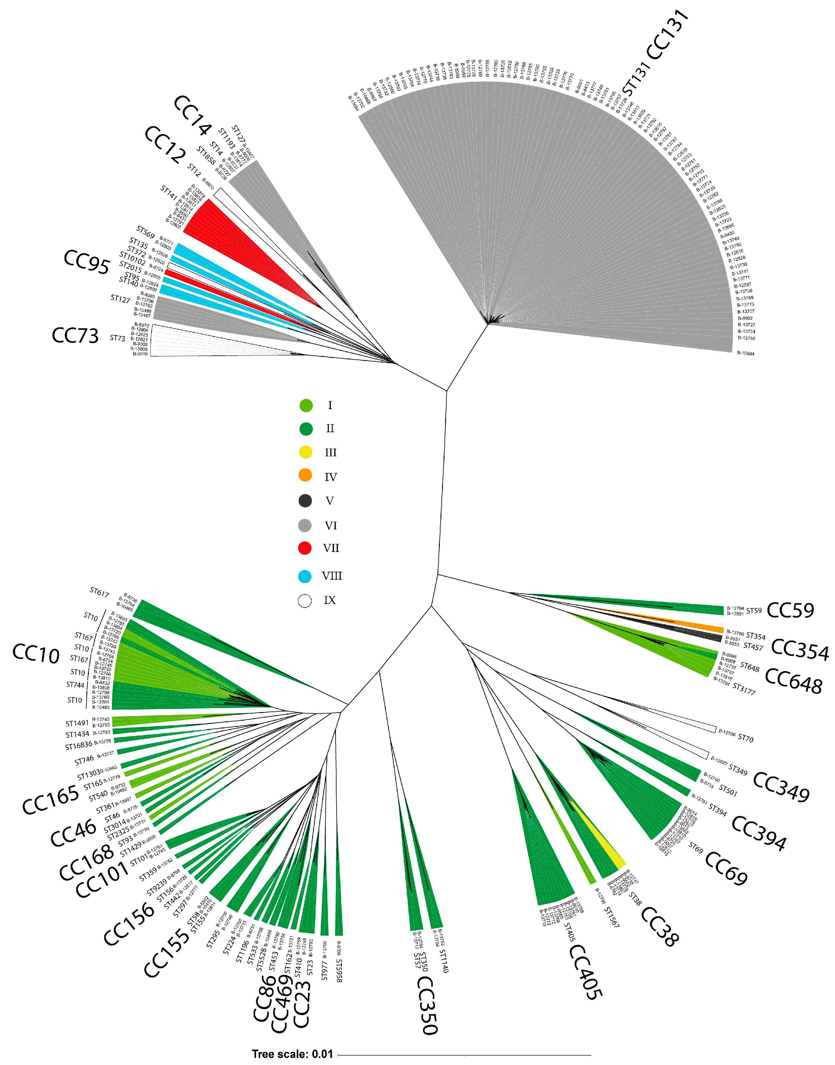 - Larsen, M.; Cosentino, S.; Rasmussen, S.; Rundsten, C.; Hasman, H.; Marvig, R.; Jelsbak, L.; Sicheritz-Ponten, T.; Ussery, D.; Aarestrup, F.; et al. Multilocus sequence typing of total genome sequenced bacteria. J. Clin. Microbiol. 2012, 50, 1355–1361. [Google Scholar] [CrossRef]