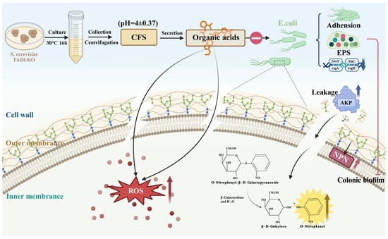 Antibiotic resistance has become a global public health crisis, with the World Health Organization (WHO) predicting that drug-resistant infections could kill 10 million people a year by 2050 [1]. The limitations of traditional antibiotics have prompted the scientific community to turn to the development of natural antimicrobials. Saccharomyces cerevisiae is a class of safe and easily cultured eukaryotic microorganisms whose metabolites (such as CFS, secreted proteins, and polysaccharides) exhibit broad-spectrum antibacterial activity while having probiotic properties (such as regulating host immunity and intestinal flora balance) [2,3] and are thus seen as a potential new solution to fight bacterial infections. For example, Saccharomyces boulardii CNCM I-745 has been successfully used to treat diarrhea and intestinal infections by mechanisms involving the secretion of antitoxin proteins and the regulation of host immune responses [4,5].