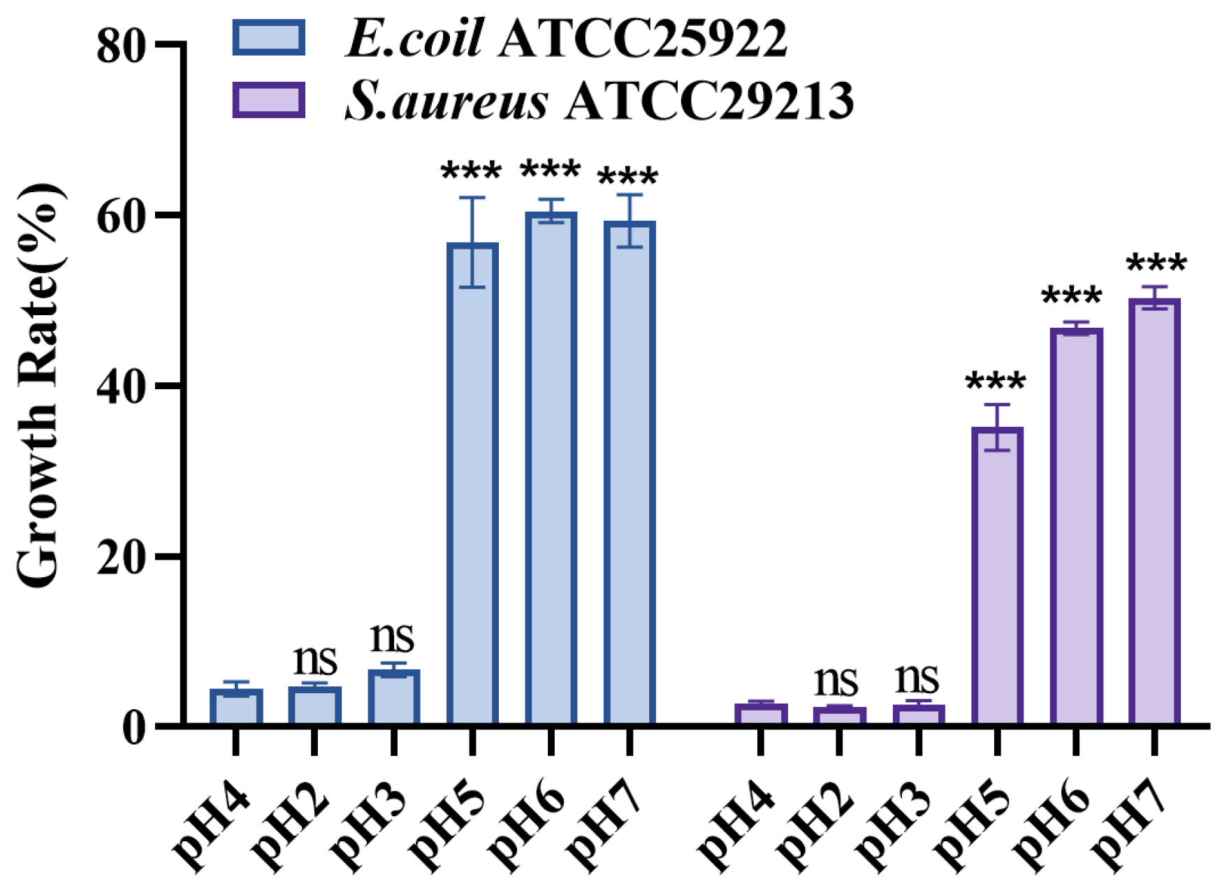 | S. aureus ATCC25923 | 37.92% ± 0.87% | 5.94% ± 0.98% *** | 38.52% ± 0.33% ns |