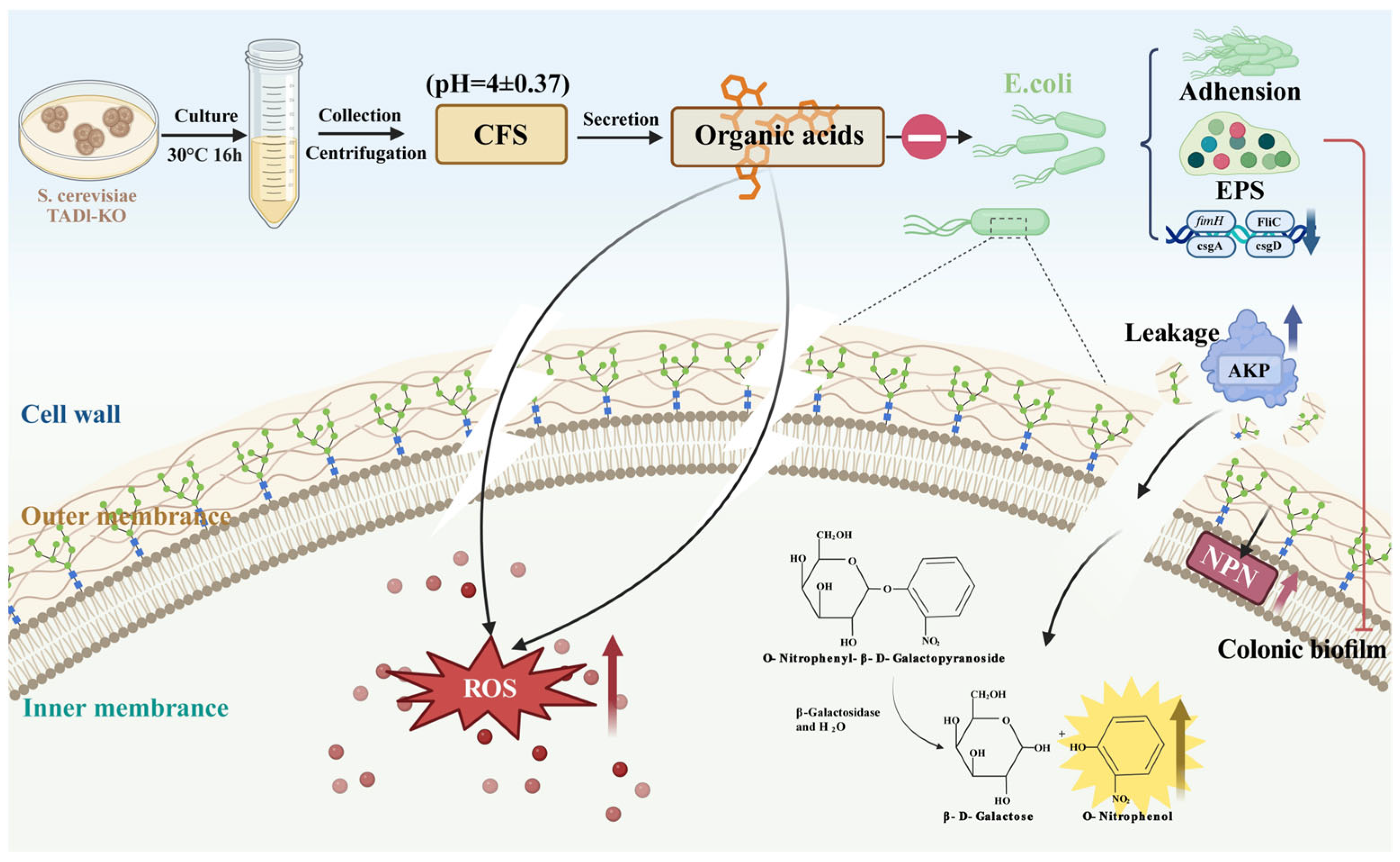 3.8. ROS As a Byproduct: S. cerevisiae TAD1-KO CFS Kills Bacteria via Direct Cell Structure Damage