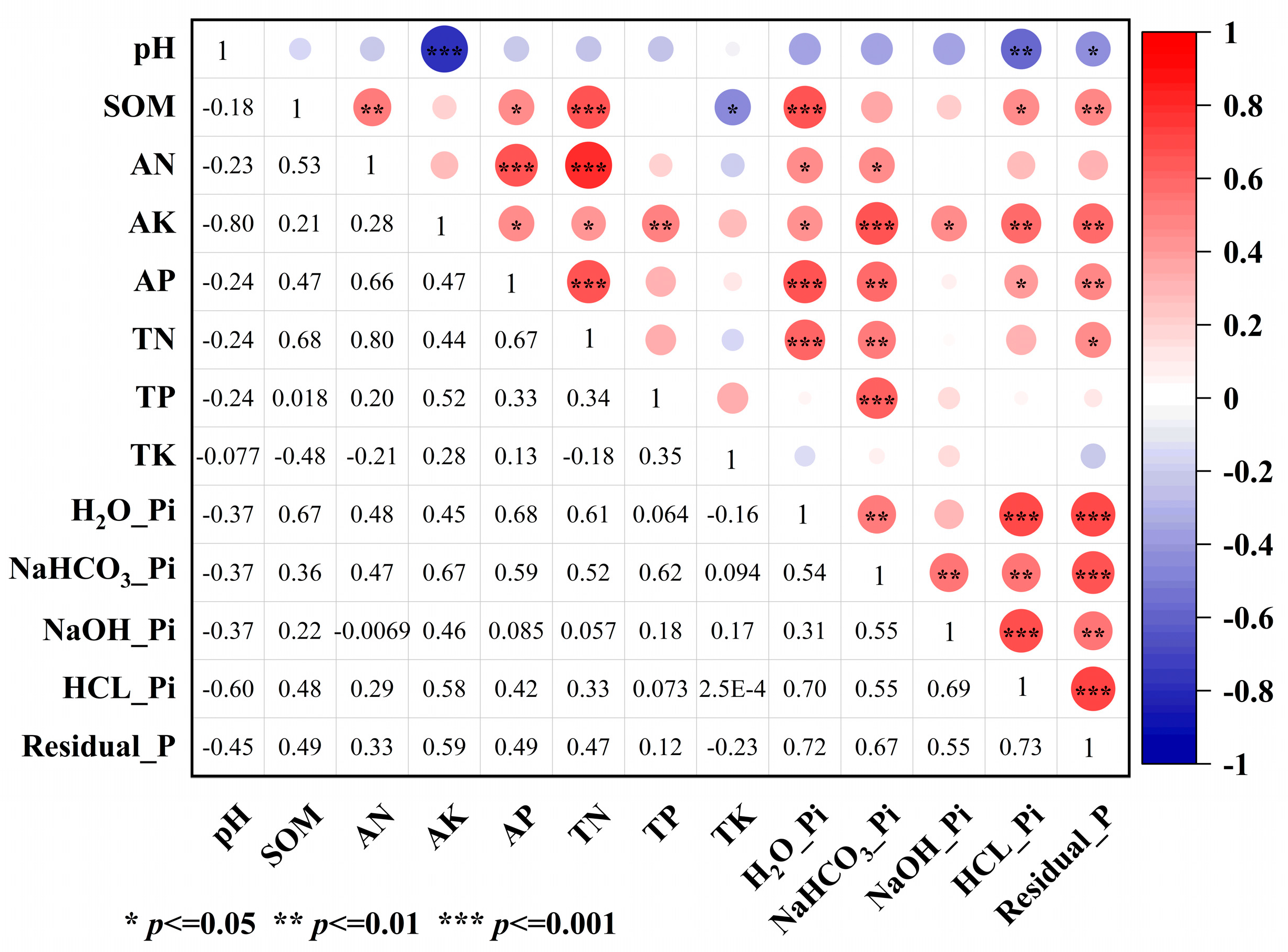 3.1.3. Relationships Between Soil Nutrients and Phosphorus Fractions