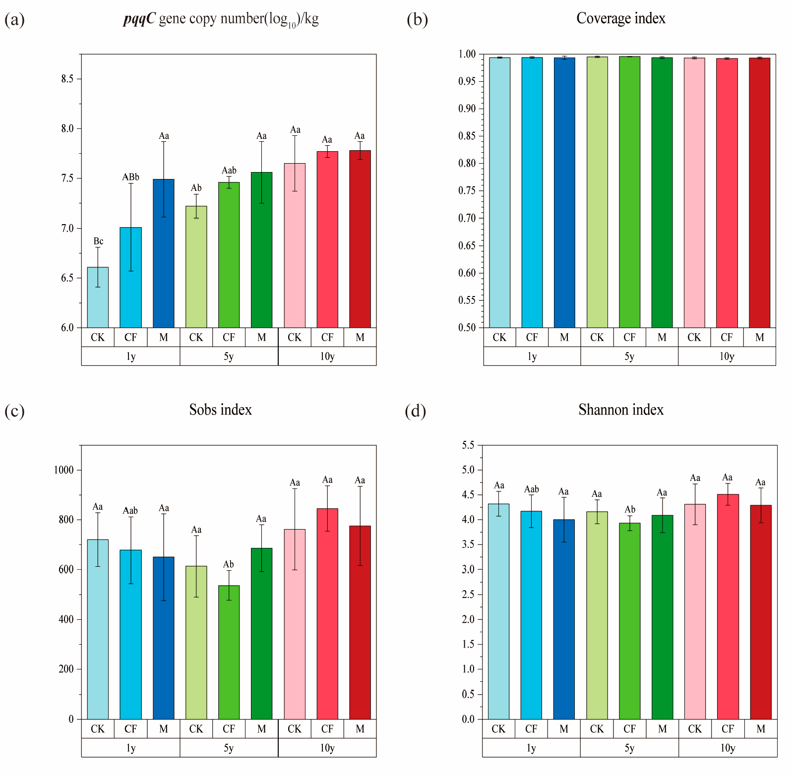 - Wang, X.; Shao, Z.; Fang, S.; Cheng, J.; Guo, X.; Zhang, J.; Yu, C.; Mao, T.; Wu, G.; Zhang, H. Soil Inorganic Phosphorus Is Closely Associated with pqqC- Gene Abundance and Bacterial Community Richness in Grape Orchards with Different Planting Years. Agronomy 2025, 15, 666. [Google Scholar] [CrossRef]