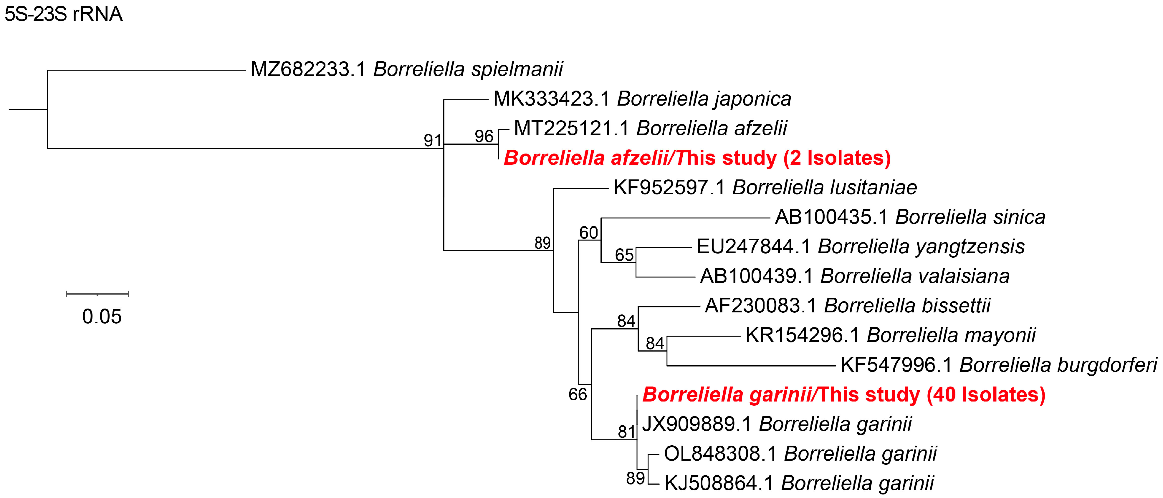 3.2. Phylogenetic Analysis of Different Tick-Borne Pathogens