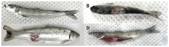 - Austin, B.; Austin, D.A. Aeromonadaceae representative (Aeromonas salmonicida). In Bacterial Fish Pathogens: Disease of Farmed and Wild Fish, 6th ed.; Austin, B., Austin, D.A., Eds.; Springer International Publishing: New York, NY, USA, 2016; p. 732. [Google Scholar]