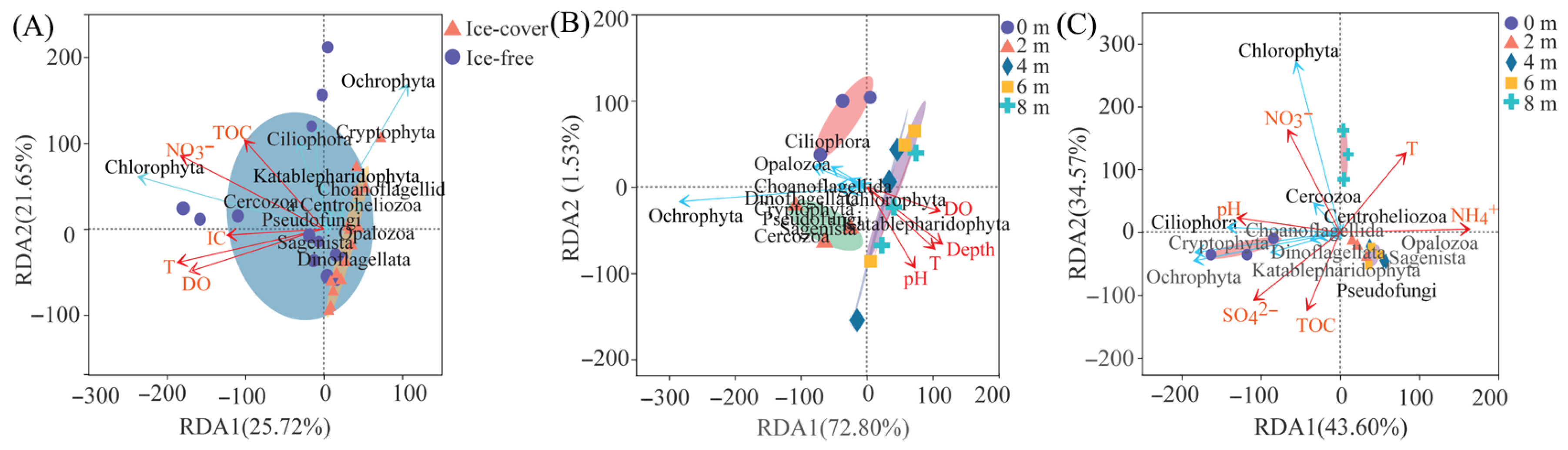 APA StyleZhou, Y., Luo, Z., & Liu, J. (2025). Seasonal Shifts from Water Depth to Nitrate Reorganize Protistan Communities Following Lake Freeze–Thaw Events. Microorganisms, 13(12), 2869. https://doi.org/10.3390/microorganisms13122869