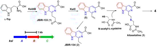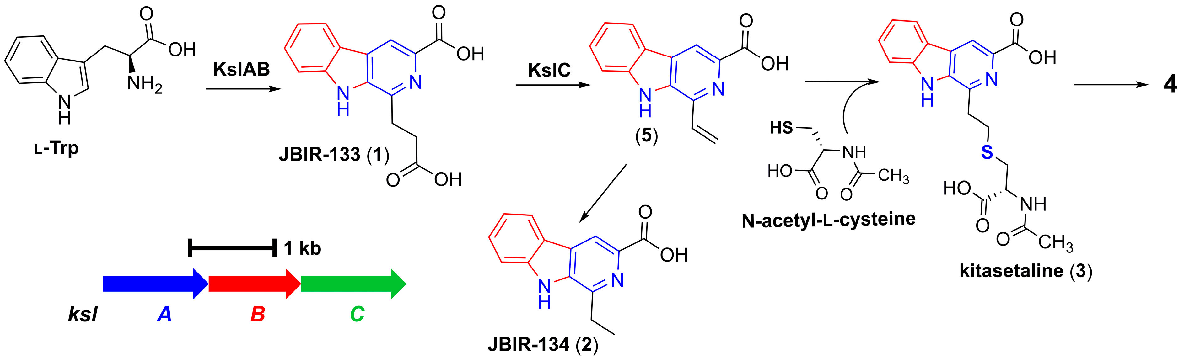 ksl, can produce JBIR-133, JBIR-134, and the additional β-carboline alkaloid, kitasetaline [