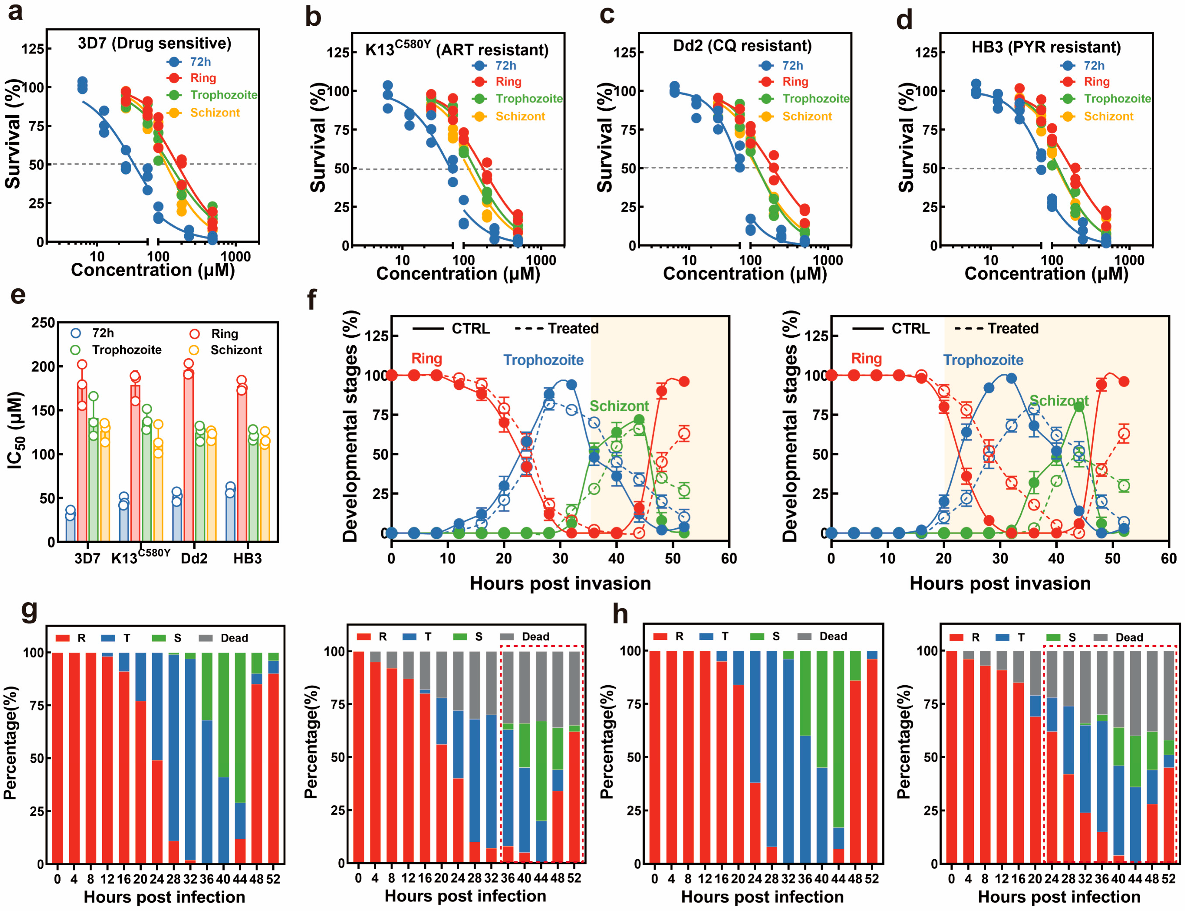 Traditional antimalarials are classified as fast-acting drugs that can eliminate the vast majority of parasites within a short period. For example, artemisinin and its derivatives generate reactive oxygen species upon activation, which exerts a lethal effect on parasites [