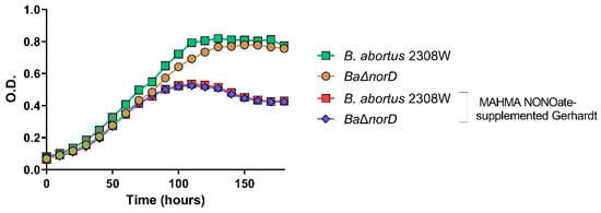 3.1. NorD Is Dispensable for Brucella abortus 2308W Growth and Survival Under Nitrate Reduction Promoting Conditions