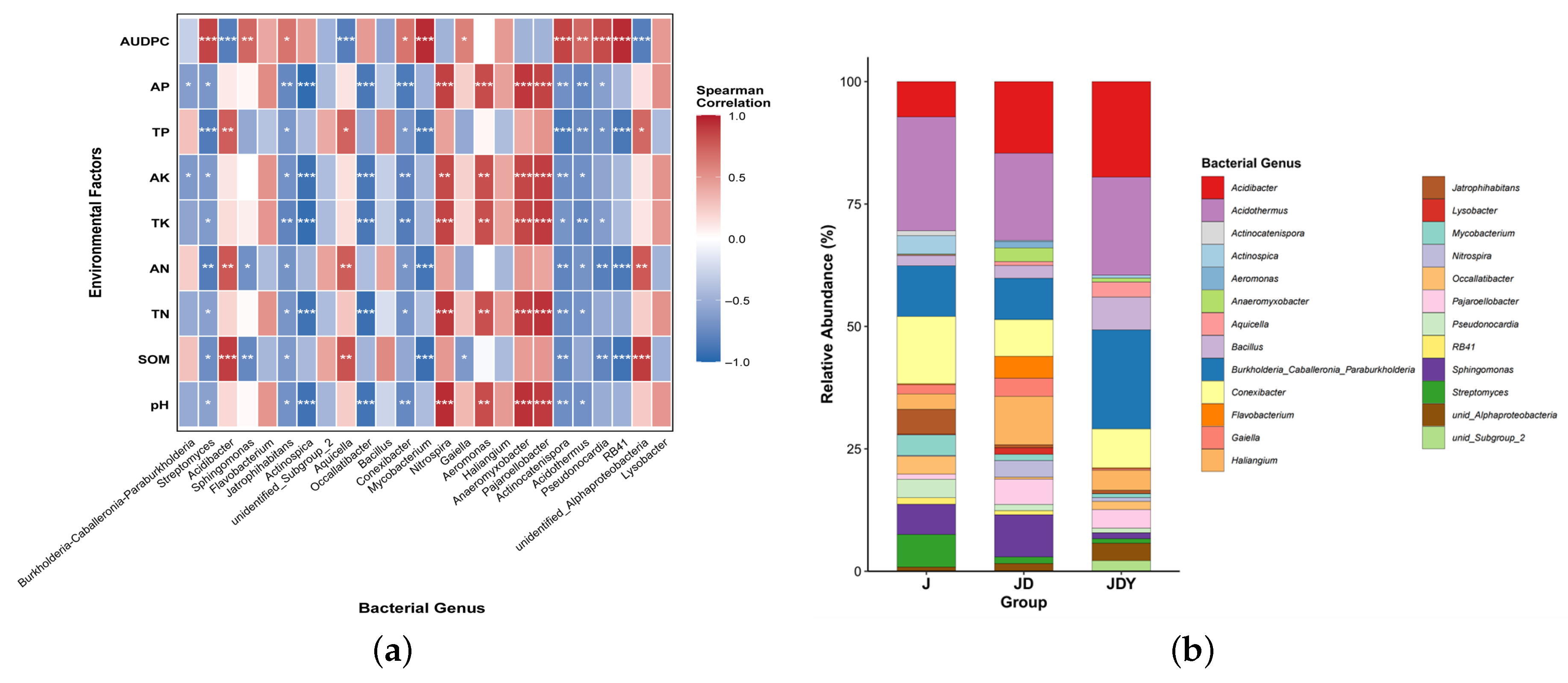 - Deng, Y.; Kong, W.; Zhang, X.; Zhu, Y.; Xie, T.; Chen, M.; Zhu, L.; Sun, J.; Zhang, Z.; Chen, C. Rhizosphere microbial community enrichment processes in healthy and diseased plants: Implications of soil properties on biomarkers. Front. Microbiol. 2024, 15, 1333076. [Google Scholar] [CrossRef]