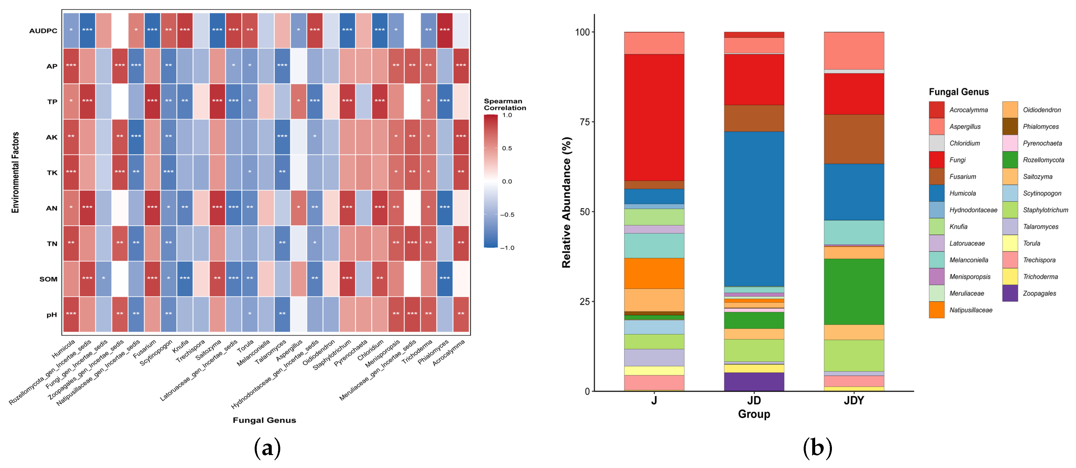 - Wang, X.; Du, C.; Li, Y.; Liu, S.; Zeng, X.; Li, Y.; Wang, S.; Jia, Y. Metal pollution-induced alterations in soil fungal community structure and functional adaptations across regional scales. J. Hazard. Mater. 2025, 494, 138553. [Google Scholar] [CrossRef]