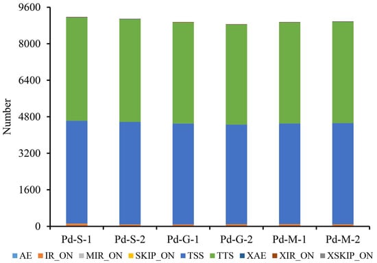 - Shen, S.H.; Park, J.W.; Lu, Z.X.; Lin, L.; Henry, M.D.; Wu, Y.N.; Zhou, Q.; Xing, Y. rMATS: Robust and flexible detection of differential alternative splicing from replicate RNA-Seq data. Proc. Natl. Acad. Sci. USA 2014, 111, 5593–5601. [Google Scholar]