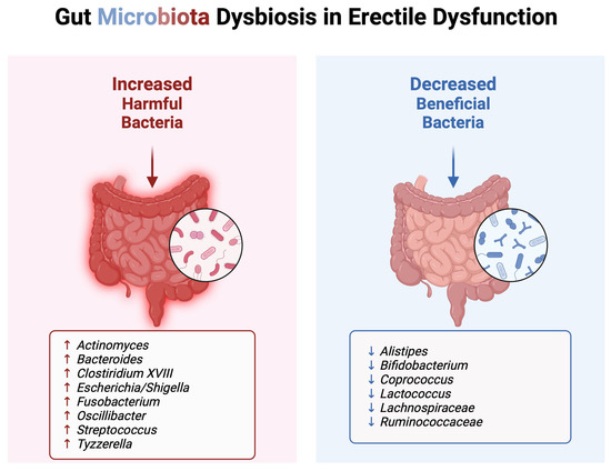 Gut microbiota alterations in erectile dysfunction. Created in BioRender. Kaltsas, A. (2025) https://BioRender.com/g09f030 (Effective Date: 15 January 2025).