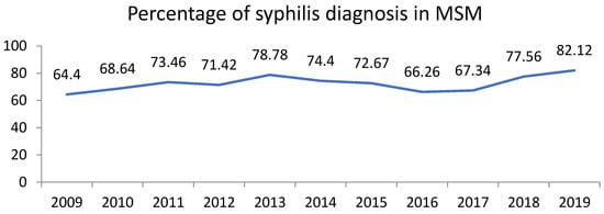 Line graph showing the percentage of syphilis cases in MSM among male cases.