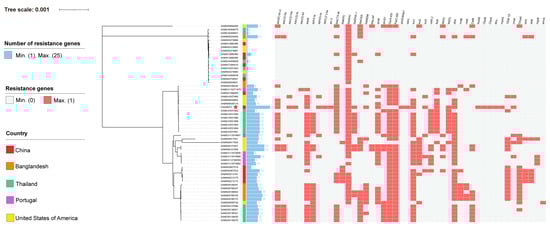 The reference genomes of representative sequence types from the phylogenetic analysis are listed in Supplementary Table S1, which also presents a graphical depiction based on the country of origin and the resistance genes harbored, as detailed in the Supplementary Information.