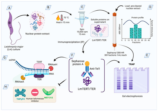 2.3. Preparation of Fractions Enriched in L. major Telomerase Using Sephacryl-300HR Gel Filtration