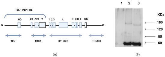 - da Silva, V.L.; de Paiva, S.C.; de Oliveira, H.C.; Fernandes, C.A.H.; Salvador, G.H.M.; Fontes, M.R.M.; Cano, M.I. Biochemical and structural characterization of the RT domain of Leishmania sp. telomerase reverse transcriptase. Biochim. Biophys. Acta 2023, 1867, 130451. [Google Scholar] [CrossRef]