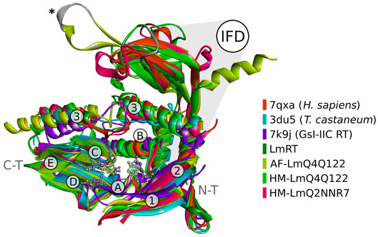 - Stamos, J.L.; Lentzsch, A.M.; Lambowitz, A.M. Structure of a Thermostable Group II Intron Reverse Transcriptase with Template-Primer and Its Functional and Evolutionary Implications. Mol. Cell 2017, 68, 926–939.e4. [Google Scholar] [CrossRef] [PubMed]