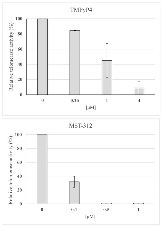 - Konieczna, N.; Romaniuk-Drapała, A.; Lisiak, N.; Totoń, E.; Paszel-Jaworska, A.; Kaczmarek, M.; Rubiś, B. Telomerase Inhibitor TMPyP4 Alters Adhesion and Migration of Breast-Cancer Cells MCF7 and MDA-MB-231. Int. J. Mol. Sci. 2019, 20, 2670. [Google Scholar] [CrossRef]