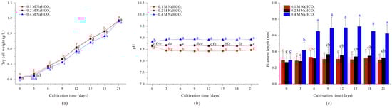 3.1. Effect of NaHCO3 Concentration on Growth and Morphology