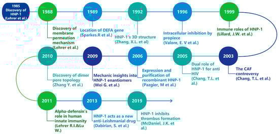 Timeline of major research discoveries related to HNP-1 [10,11,12,13,14,15,16,17,18,19,20,21,22].