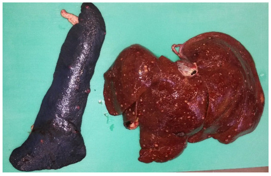 In zoos, non-human primates, several antelope species, rodents such as capybaras as well as various birds, especially representatives of the order Piciformes, are very sensitive to Y. pseudotuberculosis infections [2,7]. Acute pseudotuberculosis manifests as fulminant septicemia, often associated with sudden deaths or deaths after one to three days [19]. Some reports describe the isolation of Y. pseudotuberculosis from birds and mammals kept in zoos around the world that suddenly died from this infection [20]. In many of those animals, hepatitis, splenitis, and lymphadenitis of the mesenteric lymph nodes with miliary necrotic foci were observed during postmortem examinations [21,22].
