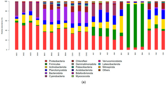 3.3.1. Bacterial Community Structure at the Phylum Level