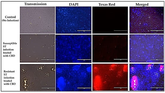 3.3. Immunofluorescence Panels of S. typhimurium Infection of Vero Cells and Treatment with CBD