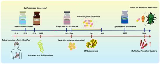 In the era before the advent of antibiotics, infections were a leading factor in deaths, especially pneumonia and influenza [8]. However, the discovery of penicillin by Alexander Fleming revolutionized medicine, saving countless lives from life-threatening bacterial infections and transforming the treatment of infectious diseases [9,10]. As a result, antibiotics are widely recognized as one of the greatest public health achievements of the 20th century, contributing significantly to increased life expectancy and improved child survival rates worldwide [11,12]. Furthermore, antibiotics have also prompted a shift in the spectrum of disease, bringing modern medicine into a new era. For example, in the United States, the leading cause of death has transitioned from communicable diseases to non-communicable diseases, significantly extending human lifespan [10]. Undoubtedly, there is no doubt that antibiotics have greatly improved modern lifestyles, whether in developed countries or in developing countries. This impact arises from antibiotics enabling physicians to perform intricate and delicate medical procedures (e.g., tumor resection, chemotherapy, and cesarean sections) that extend patients’ lives and improve patients’ quality of life, achieved through effective infection management and control. Beyond their direct benefits to individual health, antibiotics also play a critical role in public health. Their efficacy in inhibiting disease transmission among individuals has provided substantial benefits in preventing the spread of infectious diseases. However, the widespread use of antibiotics has also been associated with significant alterations in the human microbiome, leading to long-term health consequences