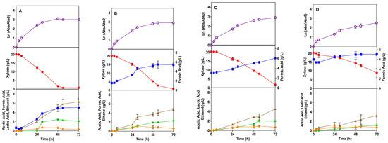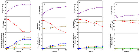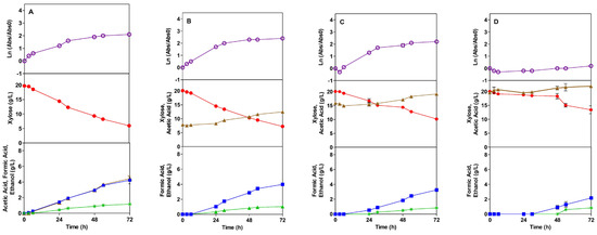 The xylose consumption rate (Qxyl) was obtained by Equation (2).