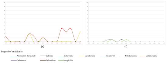 - Pierantoni, L.; Andreozzi, L.; Ambretti, S.; Dondi, A.; Biagi, C.; Baccelli, F.; Lanari, M. Three-Year Trend in Escherichia coli Antimicrobial Resistance among Children’s Urine Cultures in an Italian Metropolitan Area. Children 2021, 8, 597. [Google Scholar] [CrossRef]
