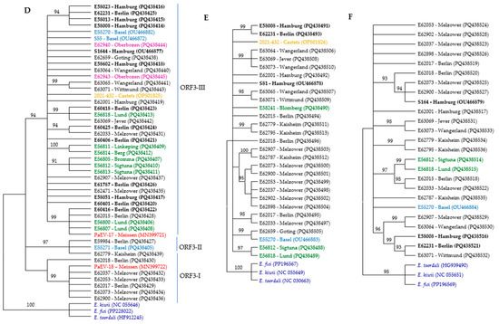 A phylogenetic analysis based on near full-length nucleotide sequences of ORF2 identified that five clades and six isolates (34%) remained ungrouped (Figure 2C).