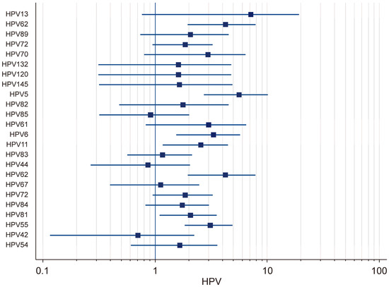 Forest plot: HPV [13,14,15,18,19,20,21,22,23,24,25,26,27,28,29,30,31,32,33,34].