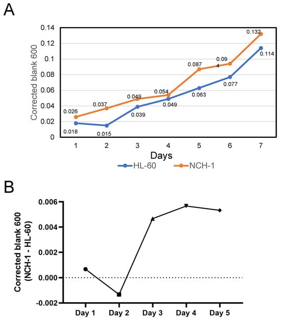The following supporting information can be downloaded at: https://www.mdpi.com/article/10.3390/microorganisms13030662/s1, Figure S1: Optical density measurements of NCH-1 and HL-60 cultures grown with equal number of cells.