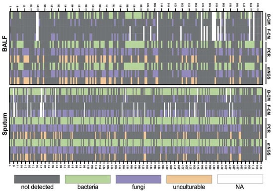 - Zheng, Y.; Qiu, X.; Wang, T.; Zhang, J. The Diagnostic Value of Metagenomic Next–Generation Sequencing in Lower Respiratory Tract Infection. Front. Cell Infect. Microbiol. 2021, 11, 694756. [Google Scholar] [CrossRef] [PubMed]
