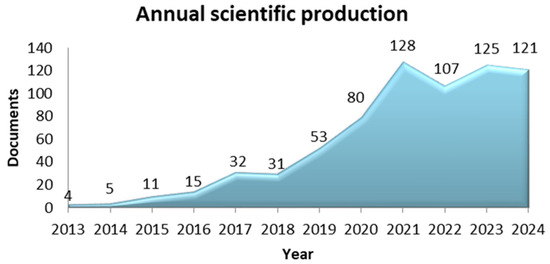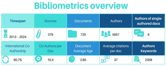 The above search was conducted in December 2024 and generated 720 records. All works were saved in BibTeX (.bib), RIS, and Excel (.csv) format with all bibliographic metadata. The bibliometric analysis was performed using the bibliometrix package in R, a widely used tool for science mapping and data visualization [40]. After installing R, we then installed R Studio 2024.09.01, the bibliometrix library (install.packages (“bibliometrix”, dependencies = TRUE), library(bibliometrix), and used the biblioshiny web application.
