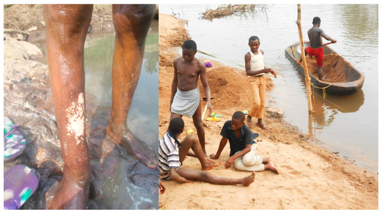The age of the respondents ranged from 14 to 50 years. In Befang, 65.0% of the participants were under 20 years old, whereas 36.4% of the participants in Soramboum were between 40 and 50 years old, with the lowest quartile being 25 years old, the upper quartile being 45 years old, the IQR being 20 years old, and the majority falling within the age group under 20 years. In contrast, sand dredging was prominent in Befang (58.8%) but absent elsewhere, and Galim displayed greater occupational diversity, including motorcycle cab drivers, shepherds, and builders.