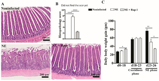 3.1. mTOR Pharmacological Inhibitor Rapamycin Reduced Subclinical NE-Induced Ileitis but Not Body Weight Gain Reduction