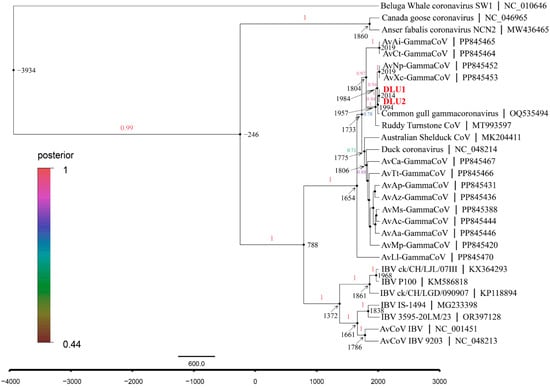 Interestingly, the positions of the two strains of BHG-GCoVs changed in the phylogenetic tree when analyzed based on different genes, particularly the S protein. This led us to hypothesize that a recombination event may have occurred. A subsequent analysis confirmed that DLU1 and DLU2 are recombinant strains derived from common gull GCoV and AvAi-GCoV. Additionally, estimates based on temporal divergence indicated that the tMRCA of GCoVs from Scolopacidae predates that of BHG-GCoVs. Therefore, it is likely that BHG-GCoVs evolved from GCoVs found in from Scolopacidae and common gull GCoV.