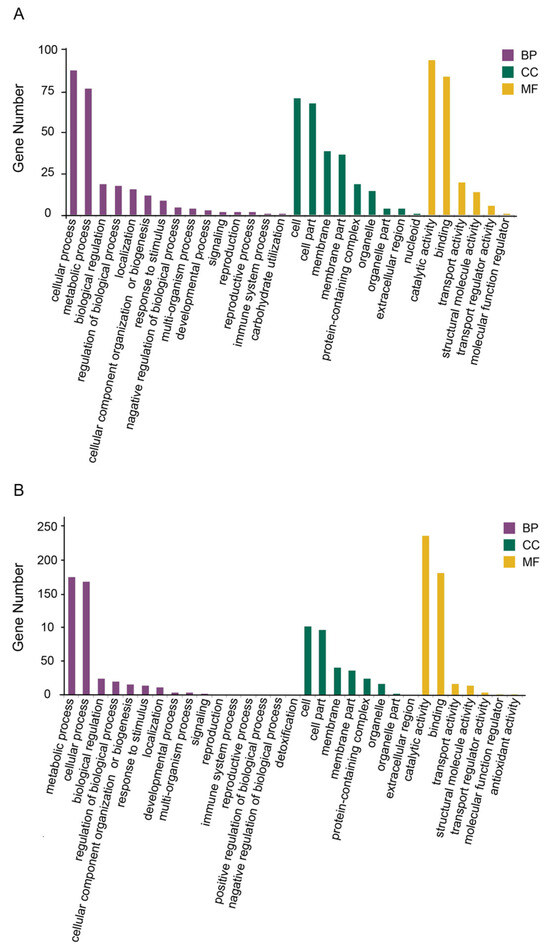 In a neutral environment, most of the proteins, according to the biological process classification, were associated with cellular and metabolic processes. In the molecular function category, proteins related to catalytic activity and binding occupied the largest parts. The cellular component was mainly occupied by cell, cell part, membrane, membrane part and protein-containing complex (Figure 8A).