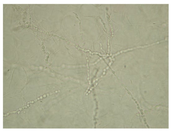 A direct microscopic examination of the samples revealed typical septate hyphae of dermatophytes (Figure 6).