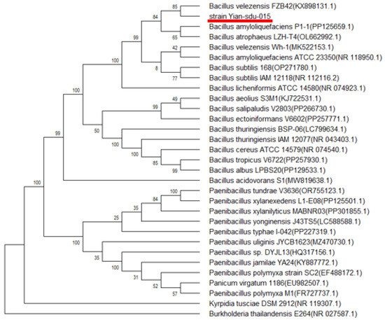 The strain was deposited as Bacillus velezensis SDU in the China General Microbiological Culture Collection Center (CGMCC No. 20318; deposition date: 20 November 2023) under the Budapest Treaty.