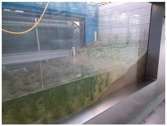 The study was conducted using an indoor lake–terrestrial ecotone ecological simulation device at the National Engineering Laboratory for Lake Pollution Control and Ecological Restoration, Chinese Research Academy of Environmental Sciences (Figure 1). The effective dimensions of the lake–terrestrial ecotone ecological simulation pools were 3.0 m in length, 2.1 m in width, and 2.0 m in height. Acrylic observation panels (2.82 m × 1.62 m) were installed on both sides of the simulation pool. To ensure waterproofing and corrosion protection, the interior of the pool was coated with blue epoxy. The device was capable of fully simulating the environmental conditions of a natural lake by adjusting the water level, water quality, light intensity, and even simulating rainfall through a computerized control system. The thickness of the sediment layer in the simulation pool was maintained at 15 cm, while the water layer thickness was maintained at 50 cm. A constant temperature of 25 °C and a photoperiod of 12 h per day were maintained in the simulation pool. The pool was regularly supplemented every 30 days using an artificial rainfall system operating at a rate of 30 mm/h. The chemical properties of the soil used in the simulation pool are detailed in Table 1.