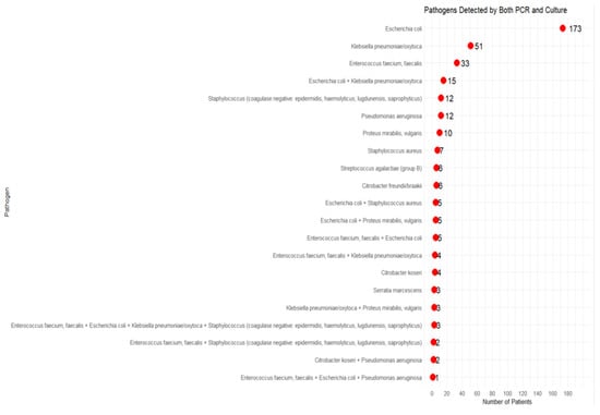 - Hao, X.; Cognetti, M.; Patel, C.; Jean-Charles, N.; Tumati, A.; Burch-Smith, R.; Holton, M.; Kapoor, D.A. The essential role of PCR and PCR panel size in comparison with urine culture in identification of polymicrobial and fastidious organisms in patients with complicated urinary tract infections. Int. J. Mol. Sci. 2023, 24, 14269. [Google Scholar] [CrossRef]