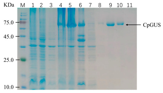 2.3. Expression and Purification of CpGUS Protein