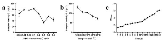 - Duan, X.; Chen, J.; Wu, J. Optimization of pullulanase production in Escherichia coli by regulation of process conditions and supplement with natural osmolytes. Bioresour. Technol. 2013, 146, 379–385. [Google Scholar] [CrossRef]