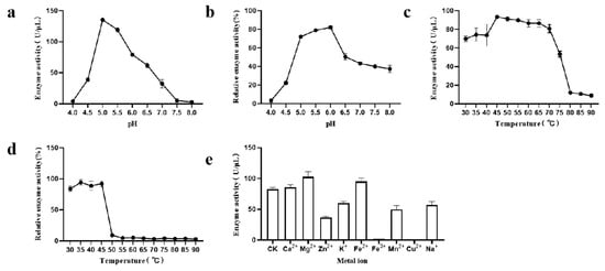 - Qin, B.S.; He, H.Y.; Li, Y.T.; Fu, Y.; Qin, Y.L. Screening and identification of β-glucosidase-producing strain and enzymatic properties of crude enzyme. China Brew. 2024, 43, 128–132. [Google Scholar] [CrossRef]